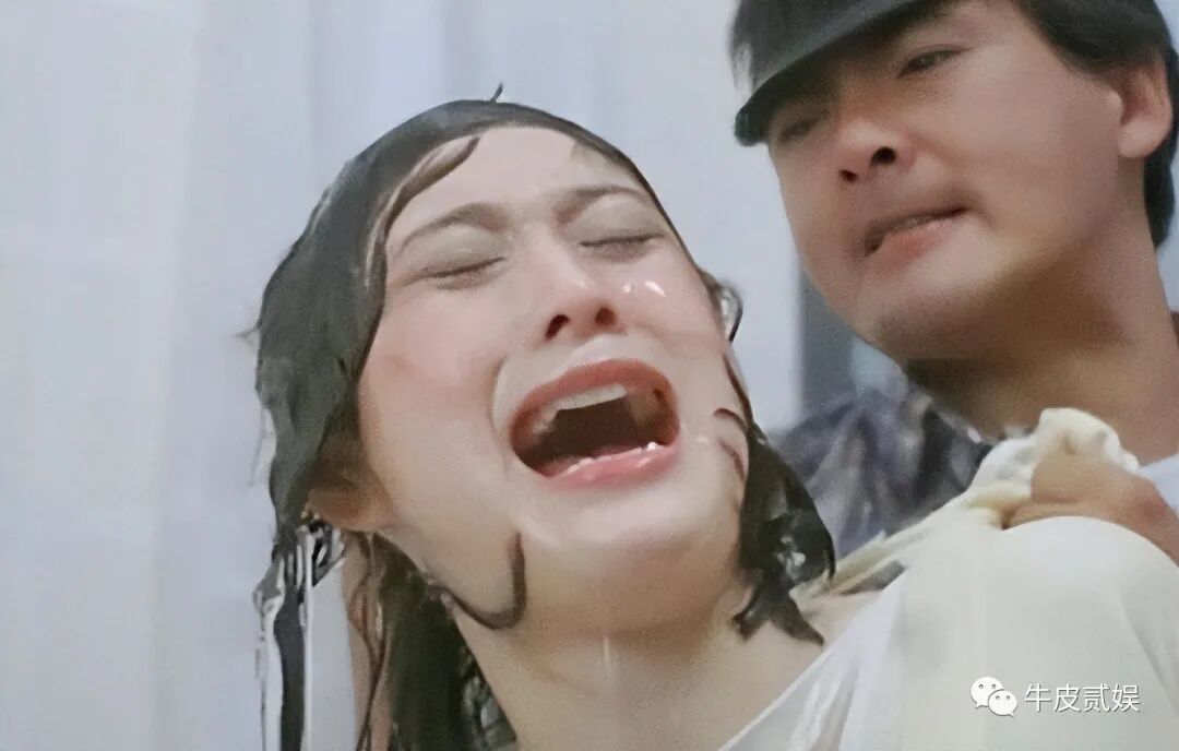 脸上被擦满面粉,最后被周润发饰演的警察拖进浴室,一把塞进浴缸中。