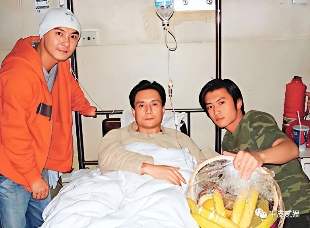 带着保养品前去医院探望,有意思的是,随身还带上了摄影师,于是就有了这张“好兄弟”画面。