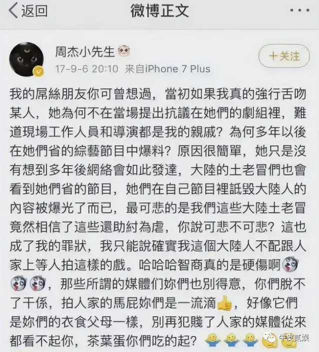 而接下来要说的“拍吻戏伸舌头”,则是给演员造成精神上的伤害。