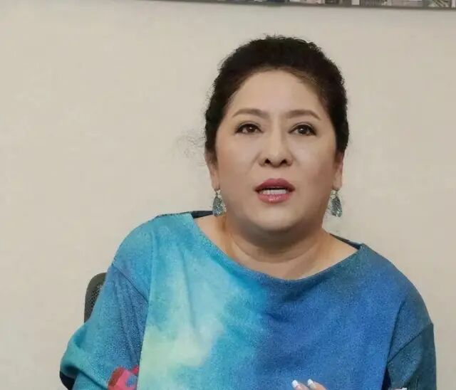 稍显严肃的面容加上发胖的身形,更加符合她“女大佬”的气质,像是电视剧中“黑帮大佬身边的威妻”。