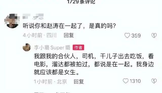 有网友为了证实这份恋情是否真实,直接跑到李小璐的社交平台上问道:“听说你和赵涛在一起了,是真的吗?”