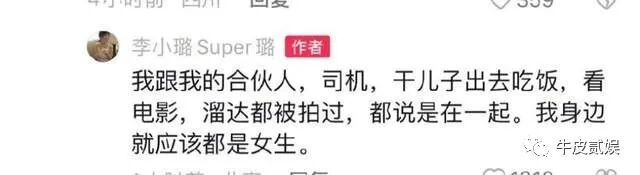 璐姐看到后,直接在评论区回怼道:“我和我的合伙人、司机、干儿子出去吃饭,看电影都被拍,都说是在一起了,我身边应该都是女生。”