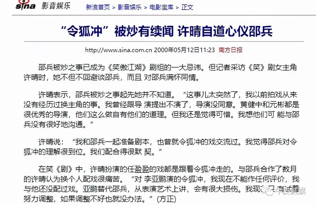 这一点从他后来被炒后许晴的采访记录可以看出,许晴曾说邵兵对令狐冲的理解很到位,两人配合也非常默契。