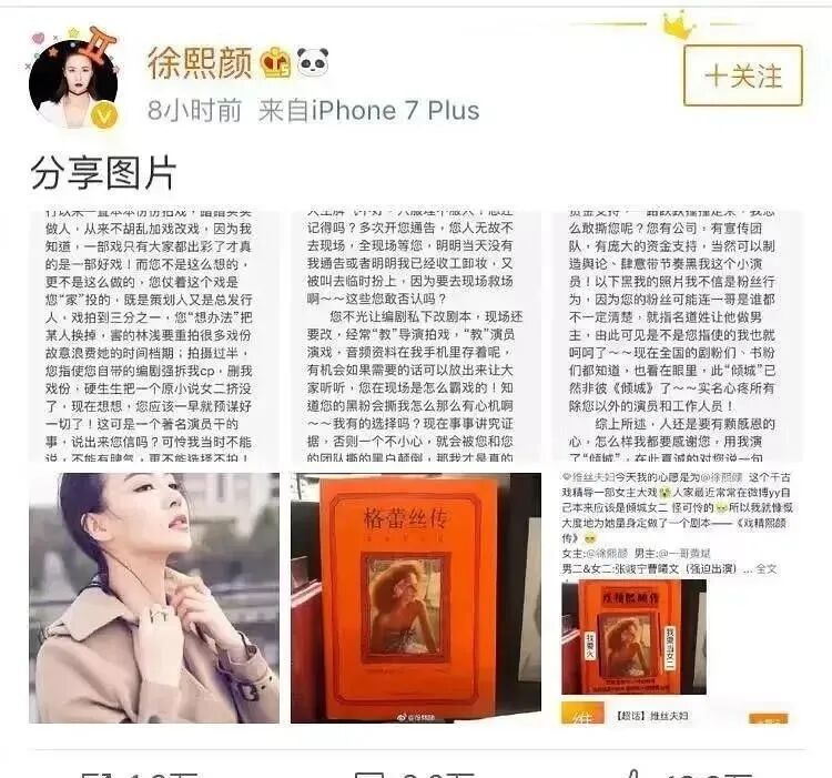后来,还是同剧组的徐熙颜(祝晗婧的扮演者)在社交平台上发文,diss曹曦文乱改戏,耍大牌等。