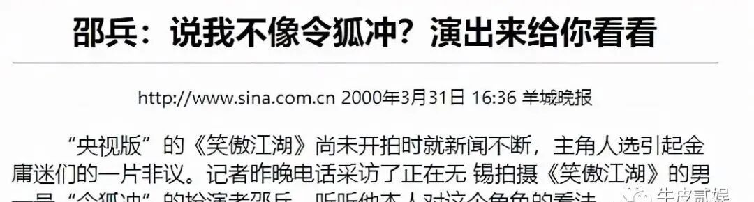 对此,邵兵喊话网友“谁说我不像令狐冲,我演出来给你们看看。”