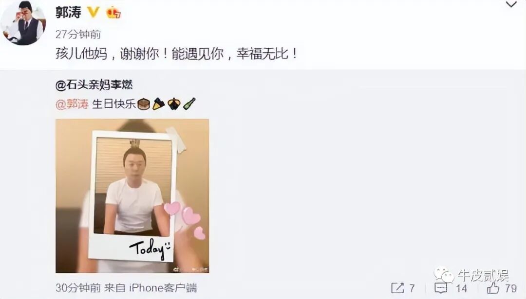 2006年,《疯狂的石头》上映,郭涛一炮而红,两人也顺利领证结婚。一年之后,李燃生下儿子郭子睿,干脆以“石头”为小名,既纪念爱情,也纪念事业。