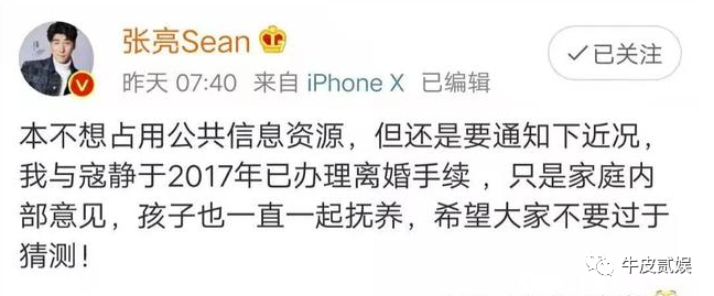 可惜的是这段婚姻并未美好下去,2019年张亮在社交平台上发文,宣布和寇静已在两年前办理离婚手续。