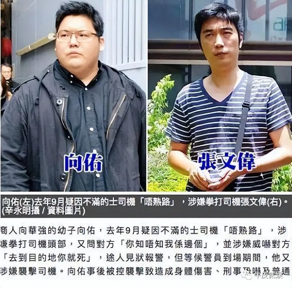 把司机打倒在地后向佑做了一件堪称“经典”的事,向佑大声向司机喊:“你知道我是谁吗?我爸是向华强!是香港最大家族的龙头老大!”