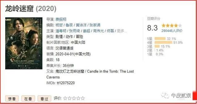 两年后,他主演的《鬼吹灯之怒晴湘西》再一次让他火了一把,而《鬼吹灯》系列的《龙岭迷窟》播出后,更是以8.3的高分收官。