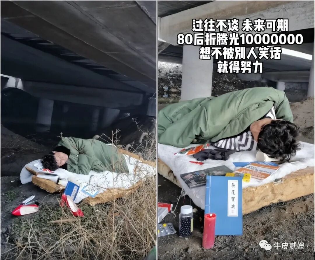 在刘晓东的公众平台上我们能看到为了还债刘晓东只能住在桥洞底下,搬运几吨重的货物来赚钱,