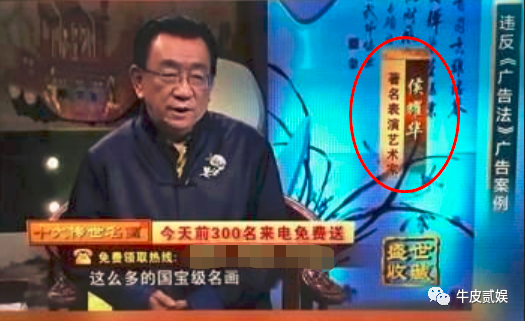 侯耀华在一个所谓“十大传世名画”的广告中顶着著名表演艺术家的称号。