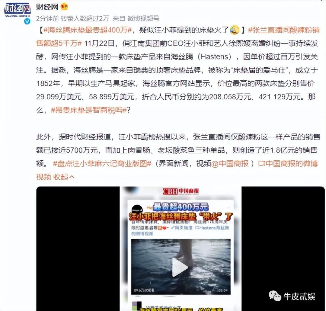汪小菲“为前妻付电费事件”,直冲热搜高位,简直能和世界杯的热度媲美,更有趣的是一张“床垫”居然引出连环大瓜。