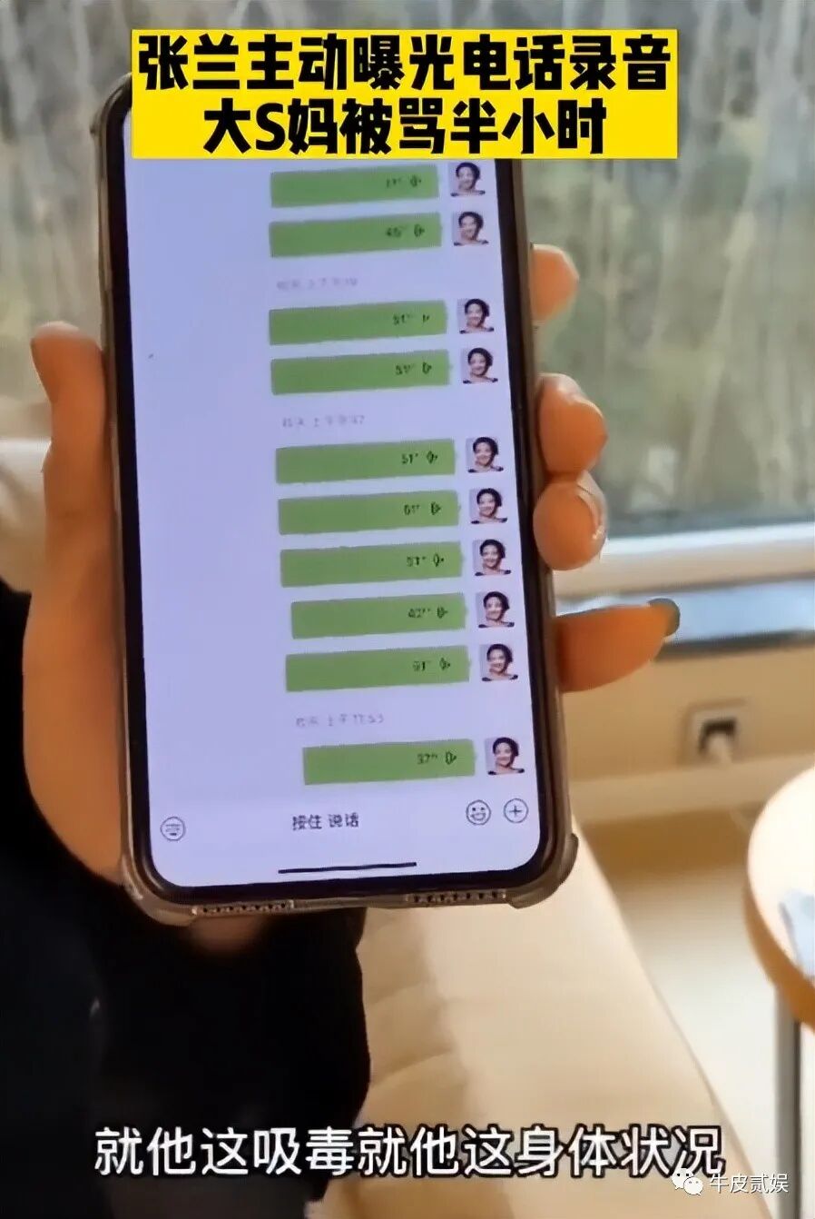 张兰也在直播间晒出与大小S母亲的聊天语音记录,语音中直指两姐妹吸毒。