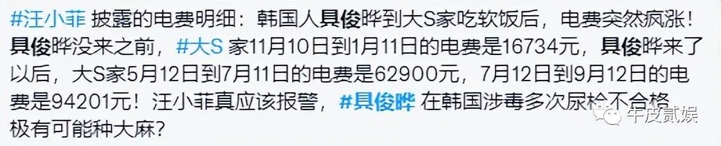网友首先提出的就是大S家的电费问题,发现电费金额巨大是具俊晔定居之后才出现的现象,