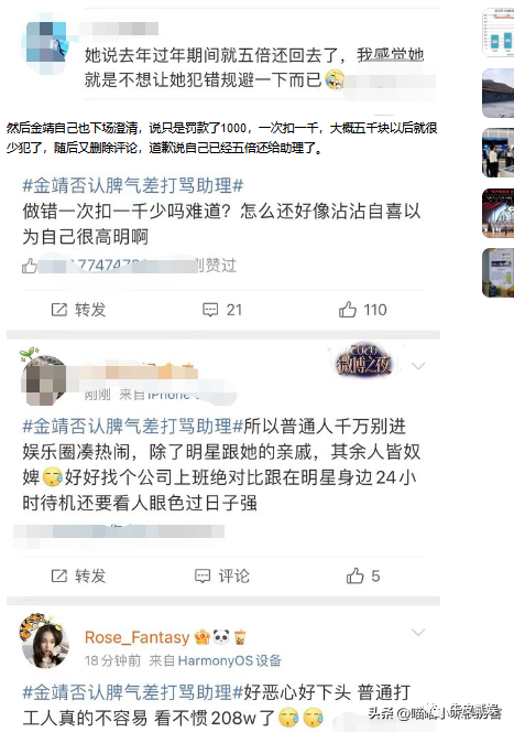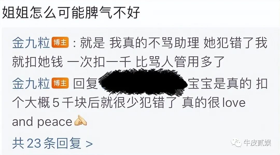 为了平息大家的愤怒,金靖又赶紧解释,自己只扣过5次,且最后这5000也当成年终奖发给助理了。