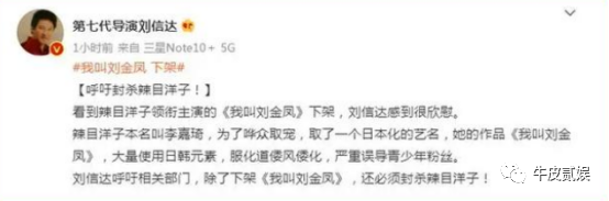 导演刘信达直接喊话:呼吁封杀辣目洋子。