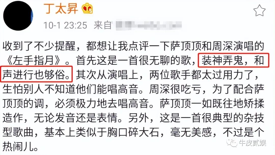 虽说丁太升是一位乐评人,他有发表自己见解的权力,但是前提是,这个人真的具备有专业的音乐素养。