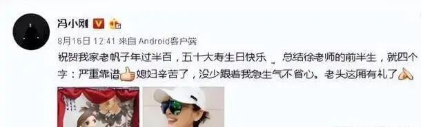 冯小刚依旧高调地在微博上表达着对自己妻子的爱意,以及对于自己婚后生活的满意,这些无疑在诉说他们之间的感情有多么的深厚。