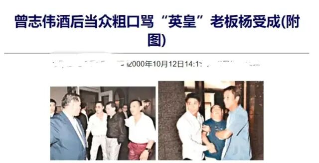 2000年在梅艳芳的生日会上,醉酒的曾志伟竟然跑到英皇老板杨受成的身边,当着所有人面说开杨受成的玩笑,还对杨受成骂脏话。