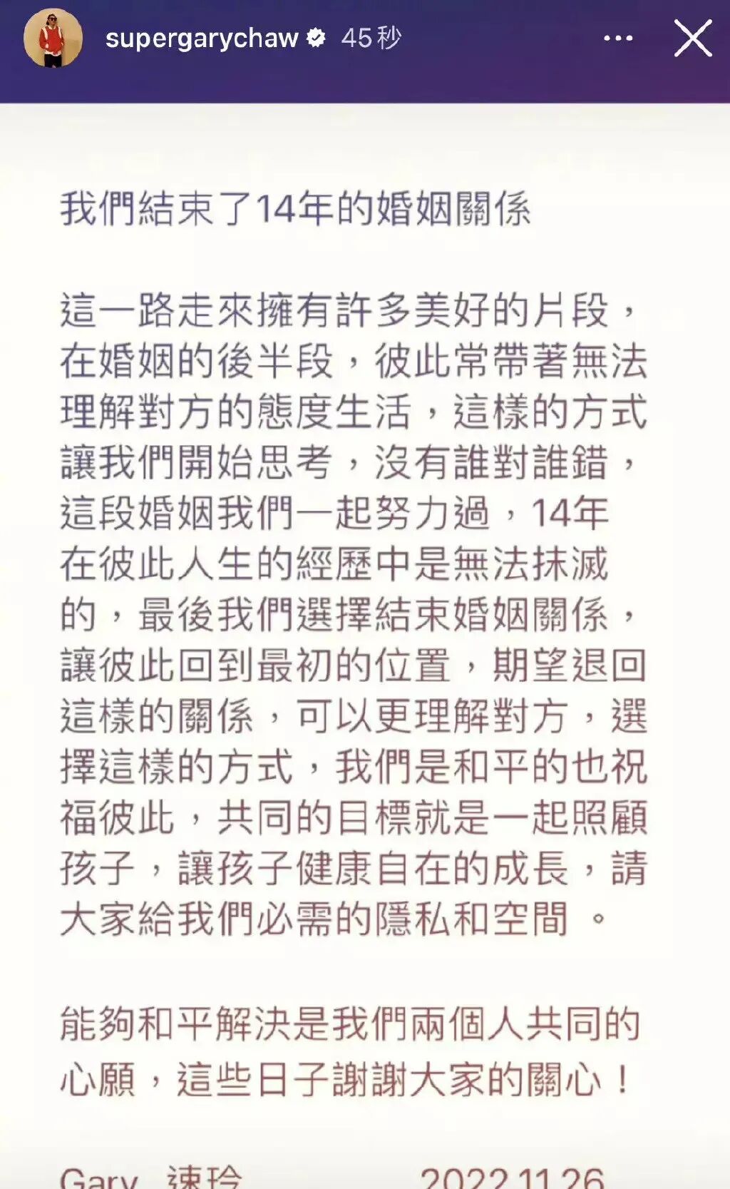 终于在昨天,曹格发布长文,宣布二人已经正式离婚。