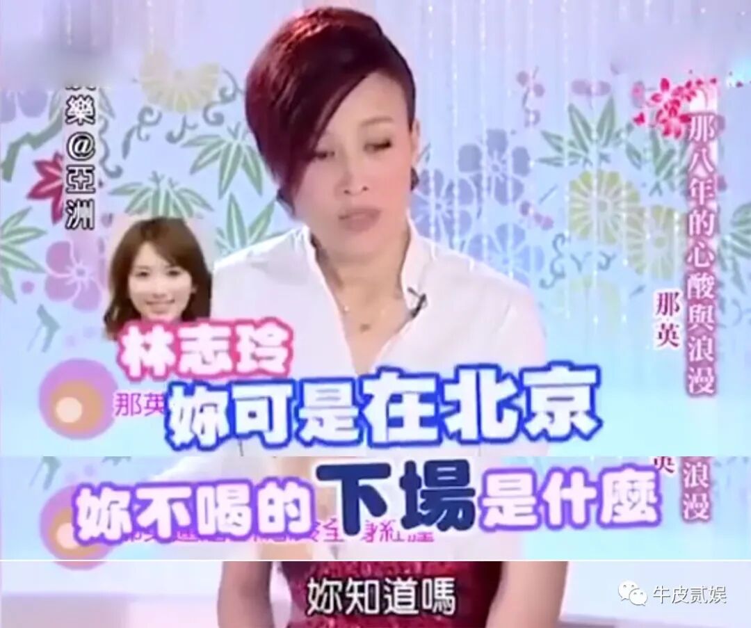 那英急了,她觉得自己很没面子,我自己都干了,你一口也不喝是什么意思?于是恶狠狠地指着林志玲:“你这是在北京,你不喝酒的下场是什么,你知道吗?”