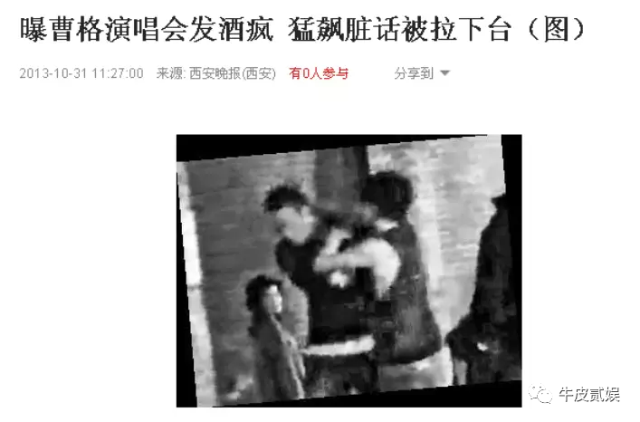 曹格被媒体拍到,喝到烂醉,然后踢烂了餐厅的灯箱。