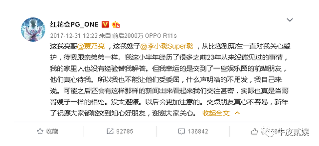 起初面对质疑,两人还有所辩解,PG更是声称贾乃亮和李小璐是他的哥哥嫂子,而贾乃亮也表示了理解。