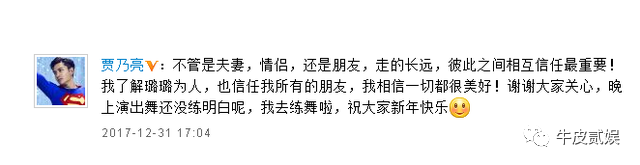 2018年一开年,国民老公就拿李小璐做头发的事进行了调侃,并发文称:“不说了,我去做头发了。”