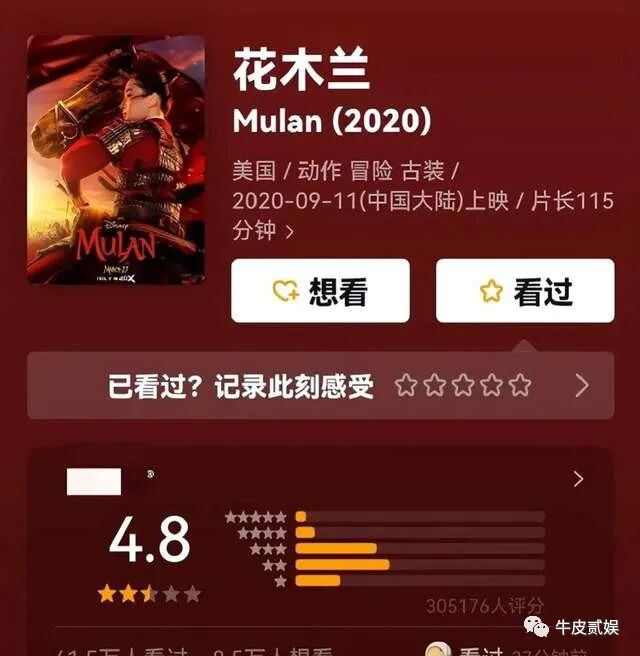 她主演的很多电影,票房真的不忍直视,其中当年炒得很热的《花木兰》,上映后更是遭到了很多网友的吐槽,而这部影片的评分,更是低到4.8分,离及格还差点距离。