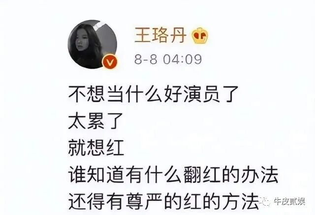 就连她自己都在平台上抱怨:不想当什么好演员了,太累了,就想红.....