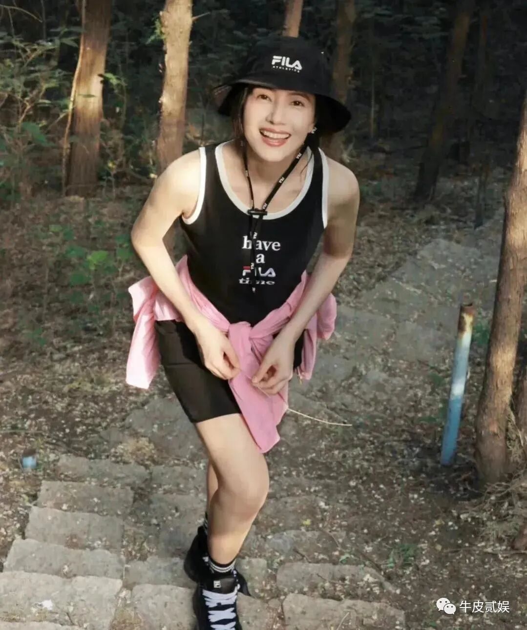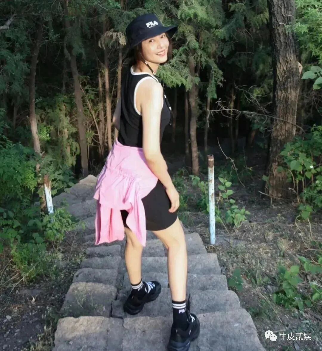 她分享出来的登山照片,黑色背心,皮肤白嫩,纤细又长的手臂,以及那两条大长腿,看起来相当地养眼。