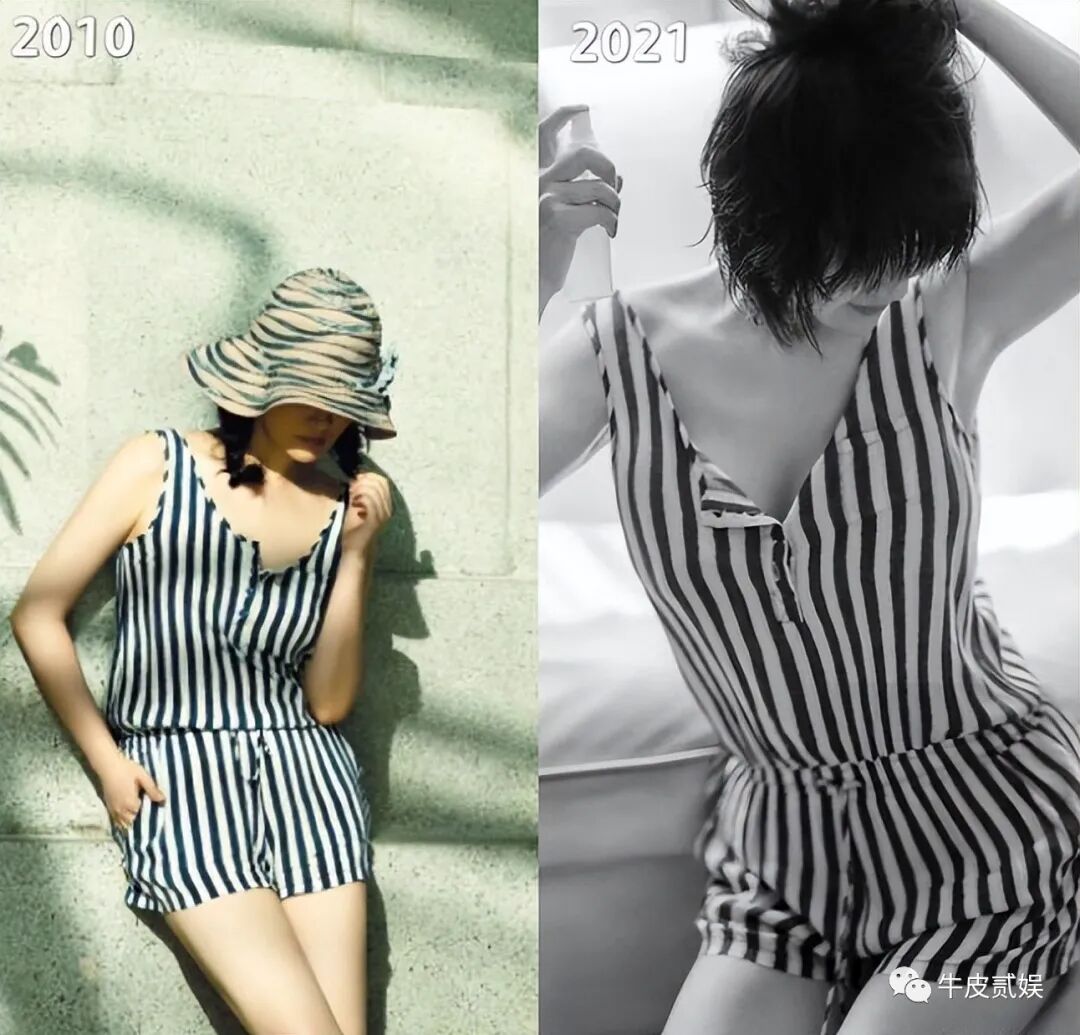其三是她完美的腰臀比还有傲人的事业线,这么多年来,身材从未走样。