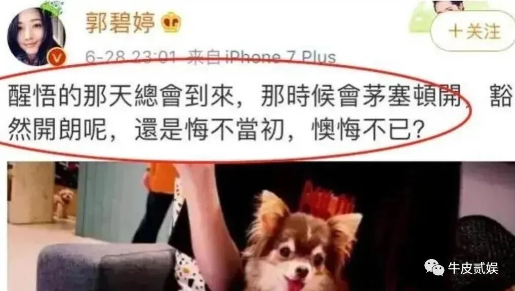 郭碧婷得知后,气得在自己的社交平台上写下这样一番话:醒悟的那天总会到来,那时候会茅塞顿开,豁然开朗呢,还是悔不当初,懊悔不已?