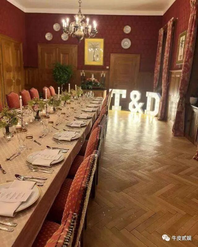 家宴现场,相当地奢华,特意弄了一个灯牌,来代表两人的名字,还有鲜花等装饰,仪式感很足。