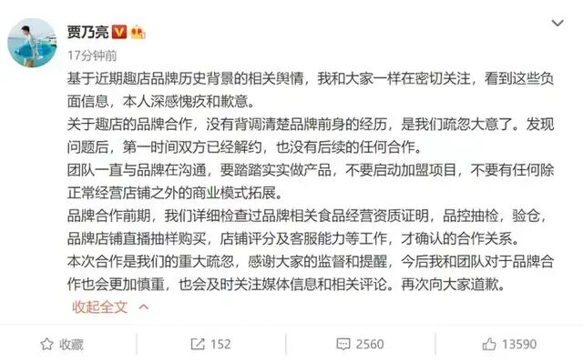 因为替罗敏直播卖货,最终遭到了众多网友的抵制和谩骂,贾乃亮抵不住舆论的压力,最终出来道歉,并称和罗老板不再有合作。