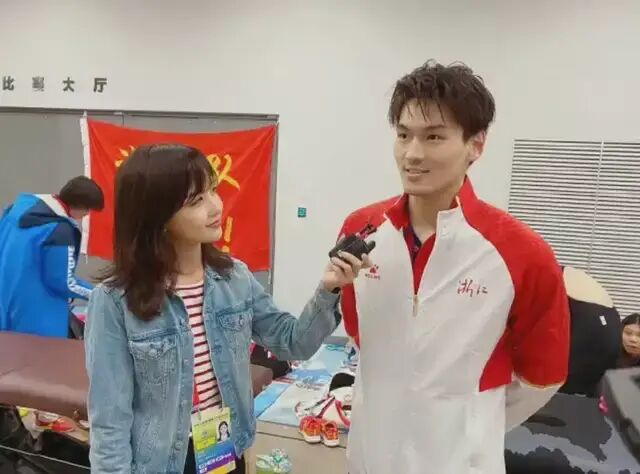 徐嘉余是一位游泳运动员,长相帅气,能力也挺出众,两人相识于一场采访,过程中看对眼了,算是一见钟情的那种的。