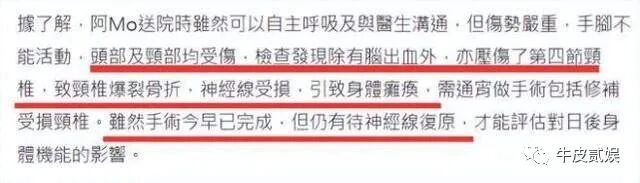 事件发生以后,该成员火速送往了医院,经医院抢救后,这哥们有脑出血的迹象,颈部第四节出现爆裂骨折,并且还曾一度陷入昏迷。