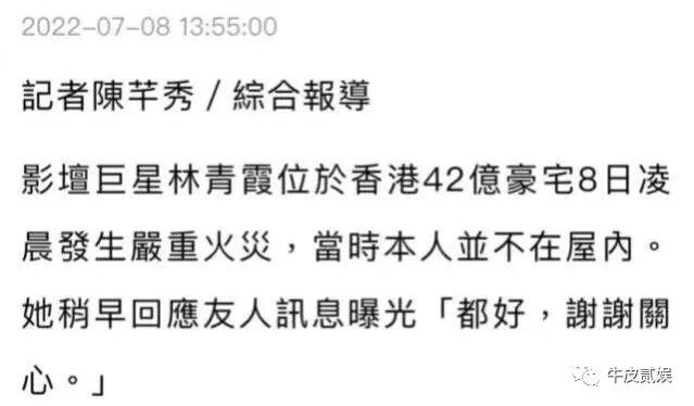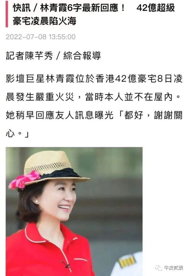 该事件发生以后,林青霞也第一时间做出了回应,称:“都好,谢谢关心!”