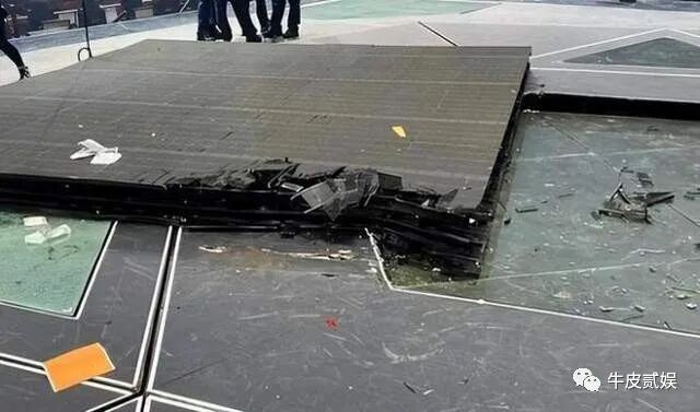 演出的过程中,男团正在舞台的中央激烈热舞,但悬在半空中的大屏幕突然坠落,而后直接砸向了舞蹈人员密集的地方。