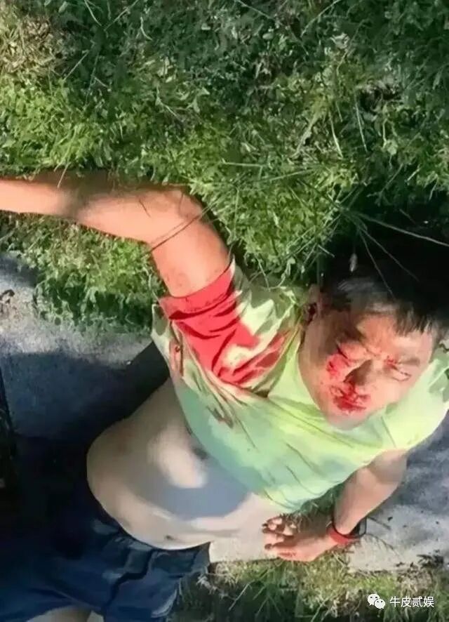 但此时的他,已经满脸是血,整个身体受伤严重,躺在路边一动不动,整个现场相当地惨烈。