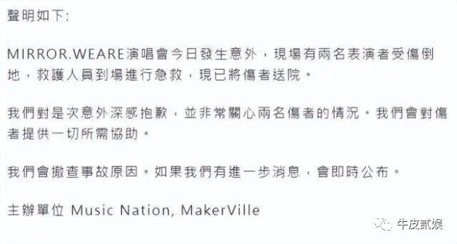 该事件发生以后,主办方随即就发布了声明,称对这次的意外事故表示歉意,并去了医院看望伤者。
