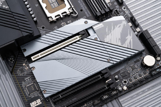 小雕Z690提供了多达4个PCIe 4.0×4 M.2插座,可以充分满足发烧玩家扩展高速存储系统的需求,同时这些M.2插座全部覆盖了新一代的散热装甲和导热垫,而且第一条M.2插槽下方还配备了导热垫和散热片,应付双面都有芯片的高速SSD散热毫无压力。