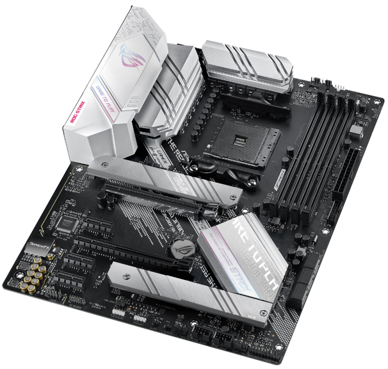 打造白色主机,在主板的选择上除了要做工扎实、品质好的,配色也很关键。说到白色主板,华硕ROG吹雪系列肯定是首选。华硕ROG STRIX B550-A GAMING吹雪是华硕专为注重颜值的潮流电竞玩家和二次元爱好者打造的一款产品,主板在外观设计上采用了ROG的全新二次元IP形象破次元美学设计,黑色主板配合白色散热装甲,散发出独特的美感。