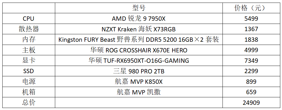 AMD全新一代5nm ZEN4锐龙处理器以及与之配套的新一代600系主板已经于9月27日晚正式出现在了市场上,想要体验新平台性能的消费者可以考虑下手了。今天站长就给大家带来一套基于锐龙7000系列旗舰型号——锐龙9 7950X的顶级配置,下面一起来了解一下吧。