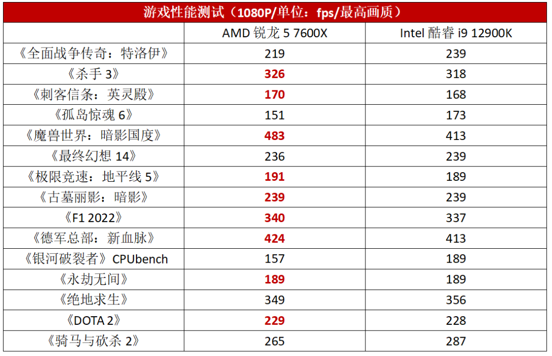 在游戏测试中,锐龙5 7600X的单核最高频率达到了5.45GHz,甚至在部分游戏中还能保持全核5.45GHz的频率,这为它的游戏性能提供了足够的保障。只要不是运行对锐龙系列优化不太好的游戏,不仅不会全面处于下风,而且在大部分游戏中还能胜出,表现上堪称惊艳。