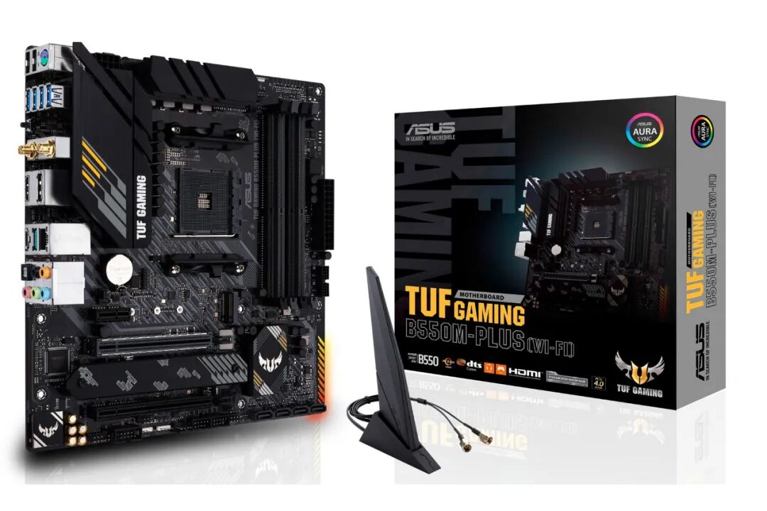 此次给锐龙5 5600X搭配的是华硕TUF GAMING B550M-PLUS(WI-FI)主板。继承了TUF GAMING电竞特工系列的美学设计,兰博基尼黄色加上军事迷彩元素,尽显疾速、稳定的硬派风范。供电模块方面,该主板采用了8+2组Dr.MOS供电模组,对于这样一块针对主流消费级别的主板来说,这样的配置已经完全够用了。同时该主板还搭载了通过军规认证的TUF电感和TUF电容,拥有更好的高温耐受性,有效的延长使用寿命和提升系统稳定性。同时,该主板还搭载了8 Pin ProCool 供电接口,实心接针能确保与主机电源线更充分的接触,降低阻抗,有效防止热熔及短路等接口故障。PCB方面,华硕TUF GAMING B550M-PLUS(WI-FI)重炮手主板采用了军规级铜层散热3+设计,拥有2Oz(70um)PCB铜箔层,可以让热量更快的传递,降低整块PCB的热量,工作更加稳定。