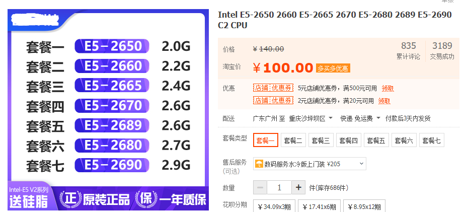 大家首先要了解的是,这里所谓的酷睿i7级别处理器并不是说性能堪比酷睿i7,而是规格和酷睿i7一样。商家往往选择的是志强E5、X5之类的服务器处理器,也就是我们常说的“洋垃圾”,这些产品虽说拥有和酷睿i7一样的最高八核十六线程,但是产品工艺老、频率低,比如常见的E5-2650,其采用的还是32nm制程,频率为2GHz~2.8GHz,看似高端,淘宝上价格也就100元左右一颗;X5650拥有六核十二线程,频率也就2.66GHz,售价更是低至45元……
