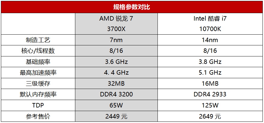 综合规格对比:AMD锐龙7 3700X架构先进、能效比胜出