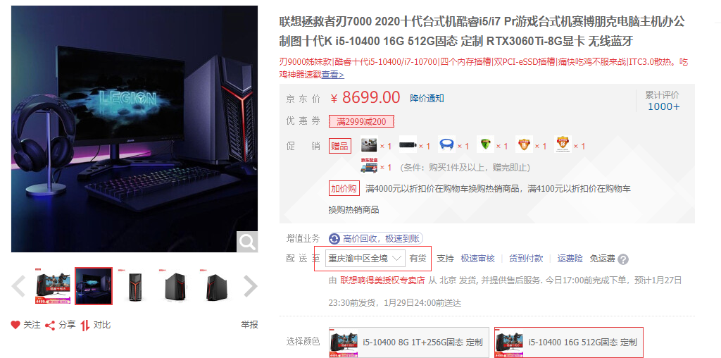 比如最近比较火的联想拯救者刃7000 2020款,酷睿i5 10400+RTX 3060Ti的配置,还有16GB内存、512GB SSD,价格为8499元。如果觉得用不着这么好的显卡,酷睿i5 10400+GTX 1650S配置的价格也才4499元,基本上跟去年年中自装主机价格差不多了。