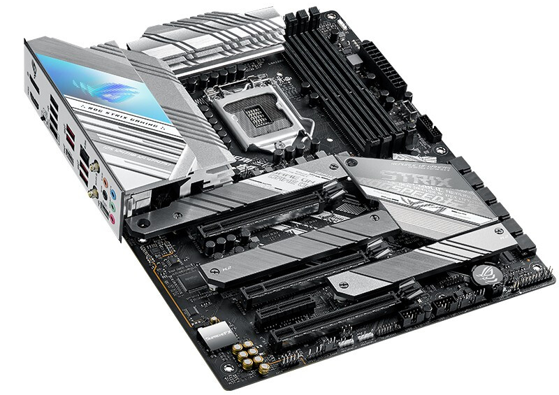 主板方面,我们选择了ROG STRIX Z590-A GAMING WIFI吹雪主板和酷睿i7 11700K相搭配。其作为ROG二次元系列专属主板的一员,银白色战甲搭配新一代RO姬Se7en雪舞战姬形态,再融入了火爆的赛博朋克元素和ROG电竞图腾,颜值出众。供电部分采用14+2组供电模组和8+4Pin ProCool II高强度供电接口,能够完全满足酷睿i7 11700K的供电需求。巨大的VRM散热装甲,即使在炎炎夏日也能保证主板有一个清凉的供电环境。